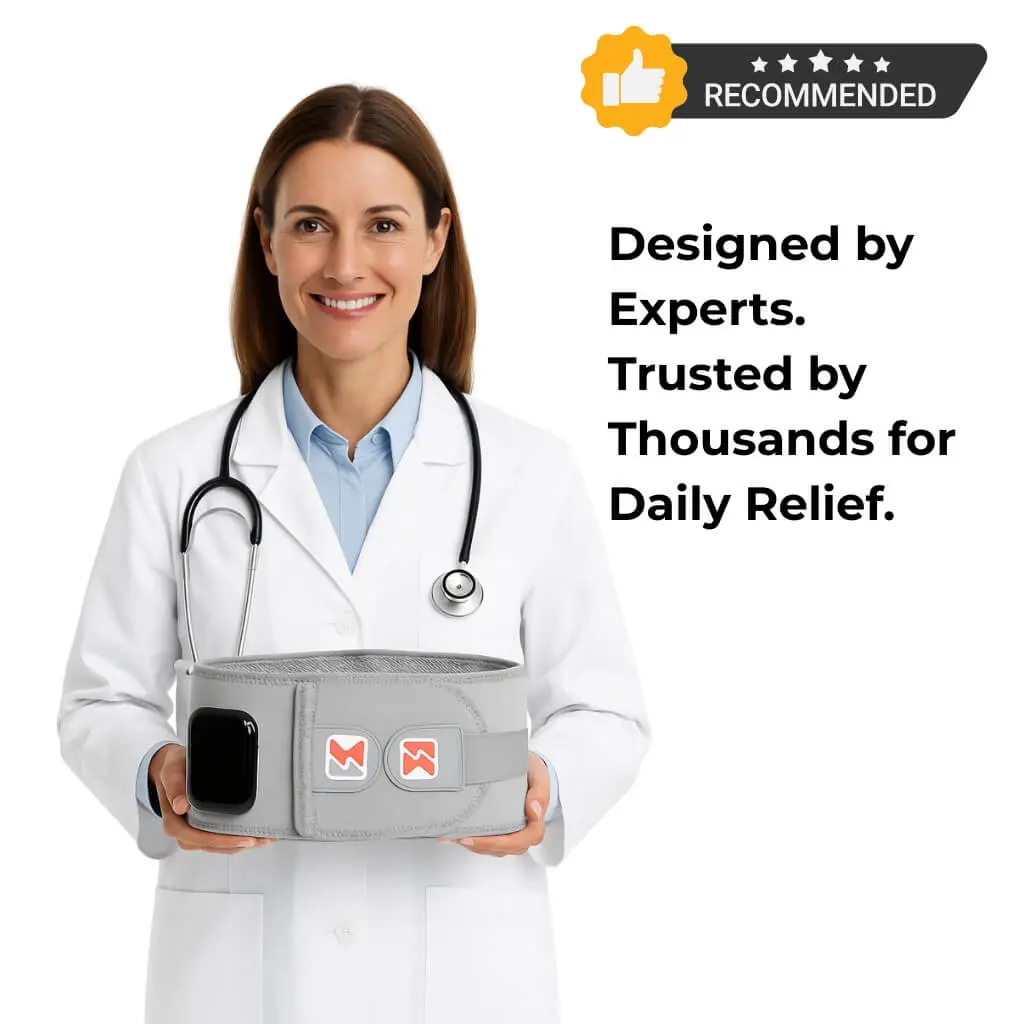 The Heated Lower Back Massager Belt is expertly designed with input from medical professionals, combining proven heat and vibration therapies for effective pain relief.