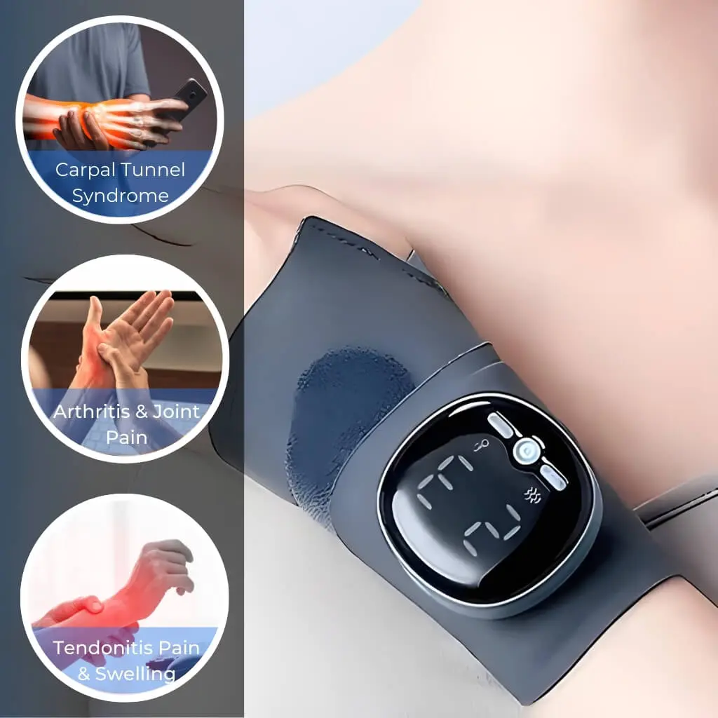 "I've struggled with wrist pain from typing all day, and this Wrist Massager has been a lifesaver. Within minutes, the heat and compression eased my stiffness, and I can work without discomfort. Highly recommend."