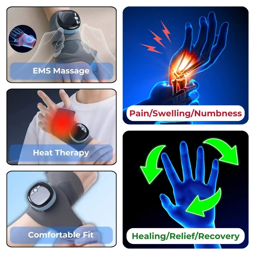 This advanced Wrist Therapy Massager Wrap uses EMS and heat therapy for targeted treatment: