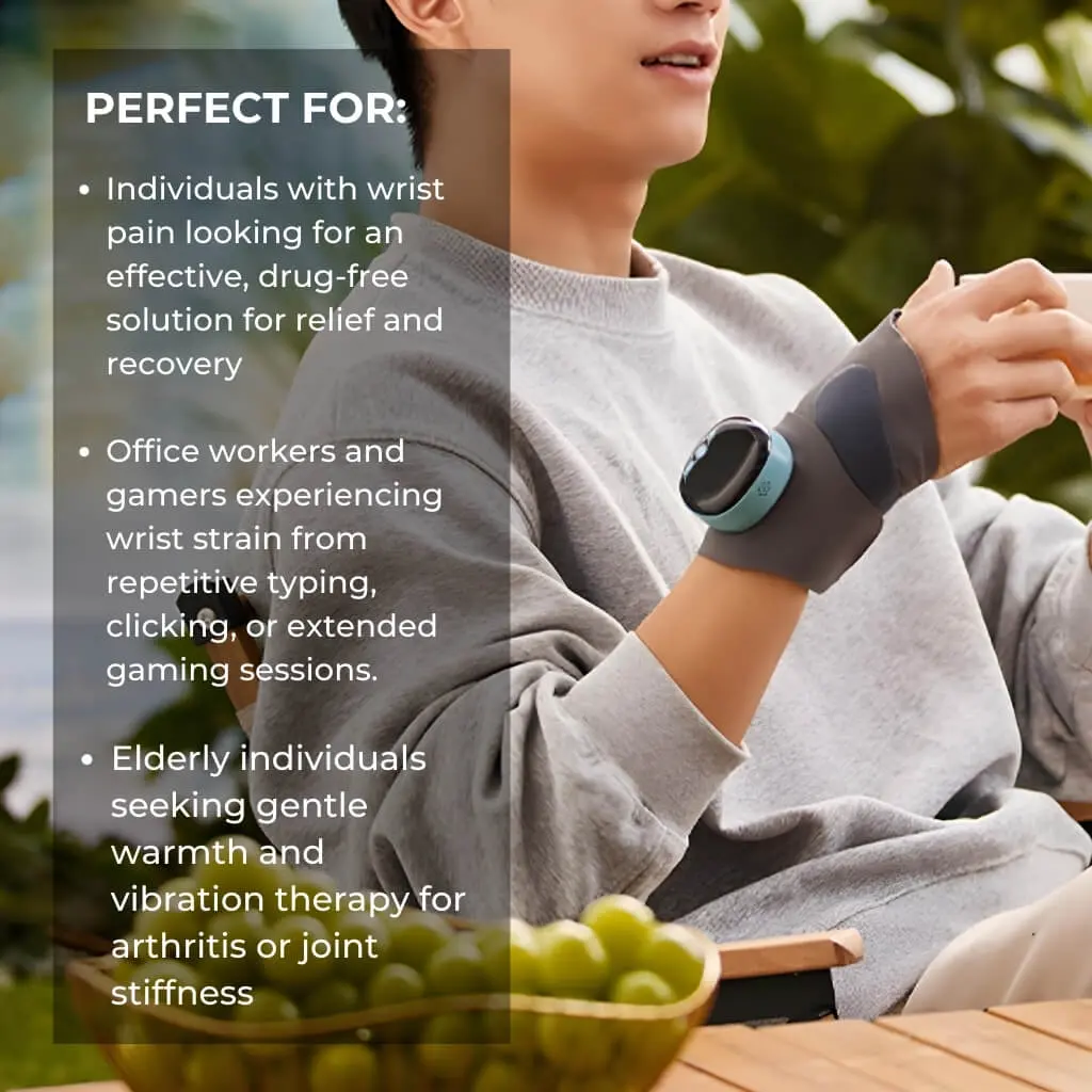 The combination of heat and muscle therapy is perfect. My wrist feels relaxed, and the pain is gone.