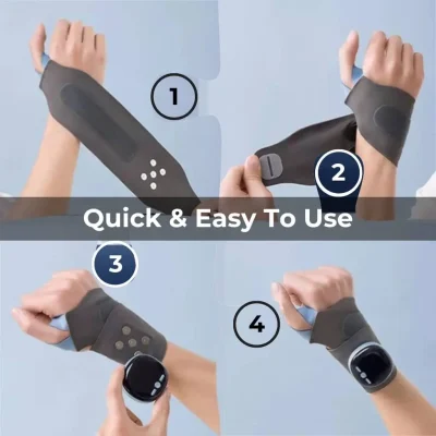 The Wrist Therapy Massager Wrap delivers gentle electrical stimulation and soothing heat to relax muscles, reduce inflammation, and accelerate healing.
