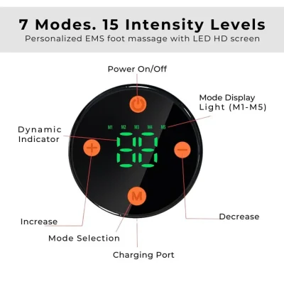 For best results, use the EMS Foot Massager for 15–30 minutes per session, up to twice a day. Avoid exceeding 30 minutes to prevent overstimulation.