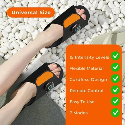 The EMS Foot Massager delivers gentle electrical pulses to relax muscles and improve blood flow, easing pain and swelling.