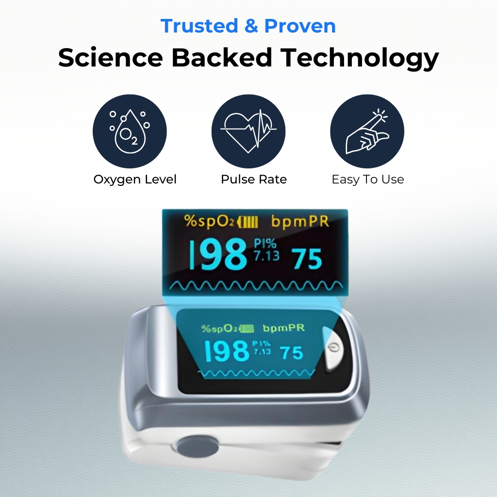 The Fingertip Pulse Oximeter solves these problems by offering fast, accurate, and non-invasive monitoring with a clear OLED display, simplifying health checks and giving caregivers the confidence to respond swiftly and effectively.