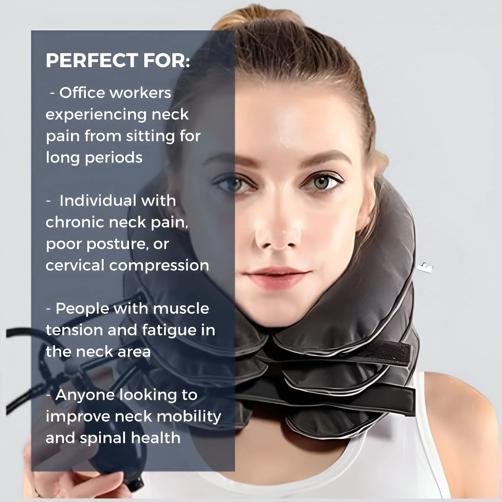 People experiencing neck pain, posture issues, or compression in the cervical area would greatly benefit from our Inflatable Neck Traction Device. It's crafted to provide relief, improve neck mobility, and support overall spinal health.