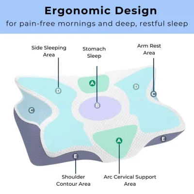 The Cervical Neck Pillow addresses these frustrations by cradling your neck and encouraging proper spine alignment throughout the night.